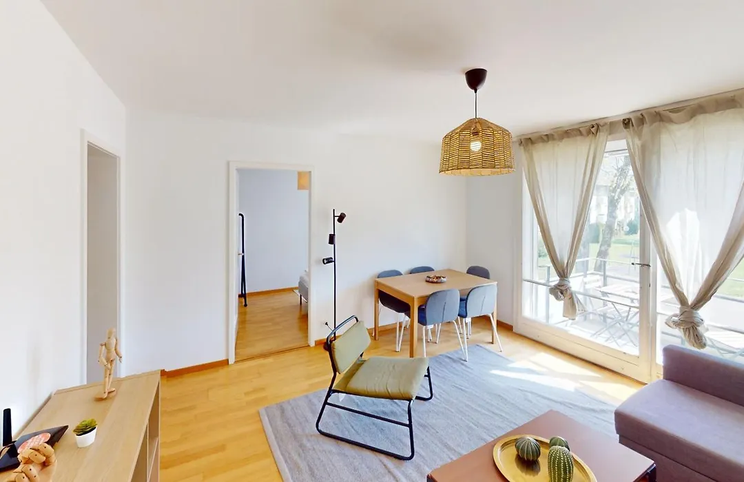 Situé dans le quartier "Seebach", l'appartement offre un accès rapide à l'aéroport international de Zurich situé à 10 minutes de route. La Place Bürkliplatz se trouve à environ 15 minutes en voiture de la résidence spacieuse.